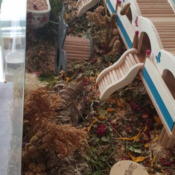 Viele Menschen denken, Hamster brauchen nur wenig Platz. Das stimmt nicht. Hamster sind sehr aktiv und laufen nachts viele Kilometer. Sie brauchen ein großes Gehege. Je größer das Gehege, desto besser für den Hamster. Ein zu kleiner Käfig macht Hamster krank und traurig.
