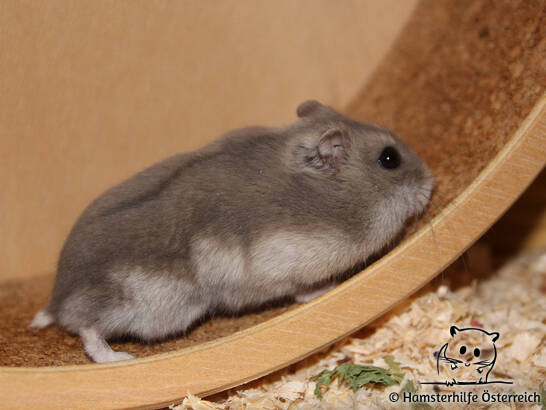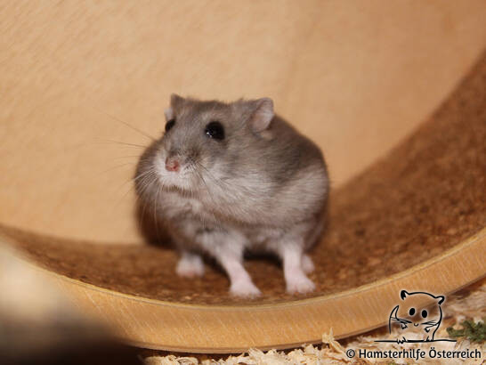Floriano ist gemeinsam mit seinen Geschwistern und seinem Papa eingezogen – leider auch mit ein paar unliebsamen Mitbewohnern, Flöhen, die er inzwischen aber erfolgreich losgeworden ist. Er ist ein aufgeweckter kleiner Kerl, der oft schon früh am Abend, etwa gegen 18/19 Uhr, im Gehege am Radeln oder fröhlichen Rumwuseln ist. Floriano nimmt bereits Kernchen aus der Hand, erschrickt jedoch manchmal noch bei zu schnellen Bewegungen. Besonders liebt er das Buddeln – und das so leidenschaftlich, dass das Freischaufeln seines Laufrads zu den regelmäßigen Aufgaben seiner Pflegestelle gehört. Ein liebenswerter, aktiver Hamster, der mit etwas Geduld weiter Vertrauen fasst und viel Freude bereiten wird.