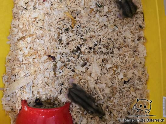 Inzwischen haben sich die entzückenden Hamsterkinder sehr gut entwickelt und machen das Gehege unsicher. Derzeit kann man sie auch tagsüber häufig an der Oberfläche in ihrem Pflegegehege herumwuseln sehen.