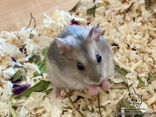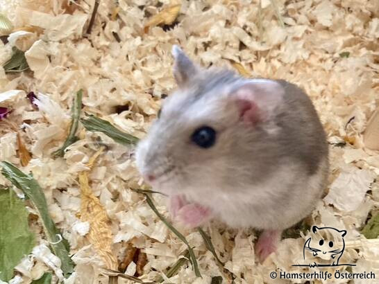 Wenn man mit ihr spricht, spitzt sie aufmerksam die Ohren und schaut einen mit ihrem Knopfaugen an. Gretchen ist ein liebenswürdiges und gutmütiges Hamstermädchen, die sich ein liebevolles Zuhause wünscht