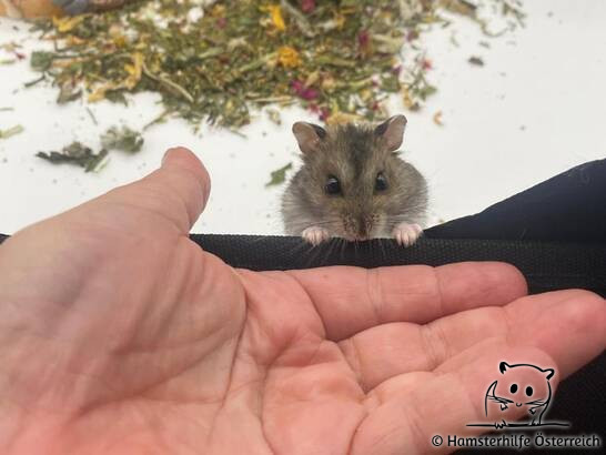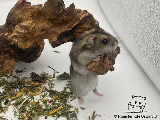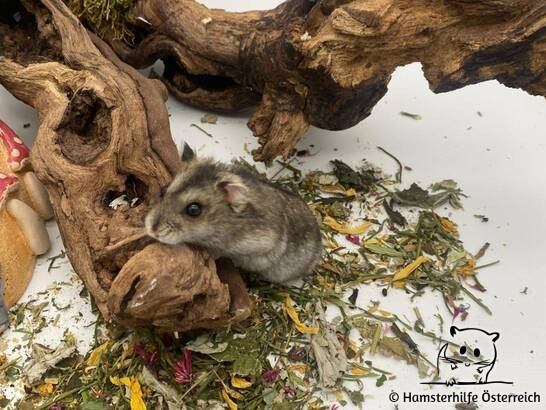 Groot ist ein Zwerghamster mit einem rundlichen, kuschligen Körperbau, der ihn noch putziger wirken lässt. Sein leichtes Übergewicht verleiht ihm einen gemütlichen Charme. Er wirkt, als hätte er es nie eilig. Er liebt es zu futtern und dabei genüsslich jedes Körnchen auszuwählen. Groot ist auch gerne tagsüber unterwegs um nachzuschauen, was es neues im Gehege zu erkunden gibt. Auch ist er sehr neugierig und hat der Pflegemama schon am ersten Tag ein Kernchen aus der Hand entgegengenommen. Groot ist gerne in seinem Laufrad, was darauf hoffen lässt, dass aus dem Flauschiball bald mal ein sportlicher kleiner Hamstermann wird.