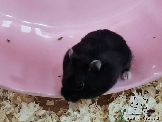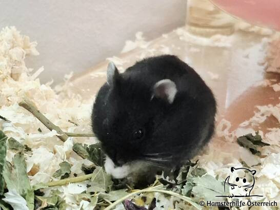 Sooty ist ein wirklich hübscher Hamsterbub. Er lässt sich derzeit noch eher weniger sehen, kommt aber aus seinem Häuschen raus, sobald er hört, dass Futter im Gehege verstreut wird. Er ist noch etwas babyhaft schüchter, traut sich aber schon das eine oder andere Leckerli aus der Hand zu nehmen.