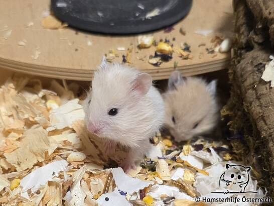Thjazi ist im Alter von drei Wochen gemeinsam mit seiner Mama Taisha und seinen 12 Geschwistern bei uns eingezogen. Die Kleinen haben sofort mit hamstertypischen Verhaltensweisen begonnen, hamstern um die Wette und buddeln sich ihre eigenen Höhlen und Gänge.